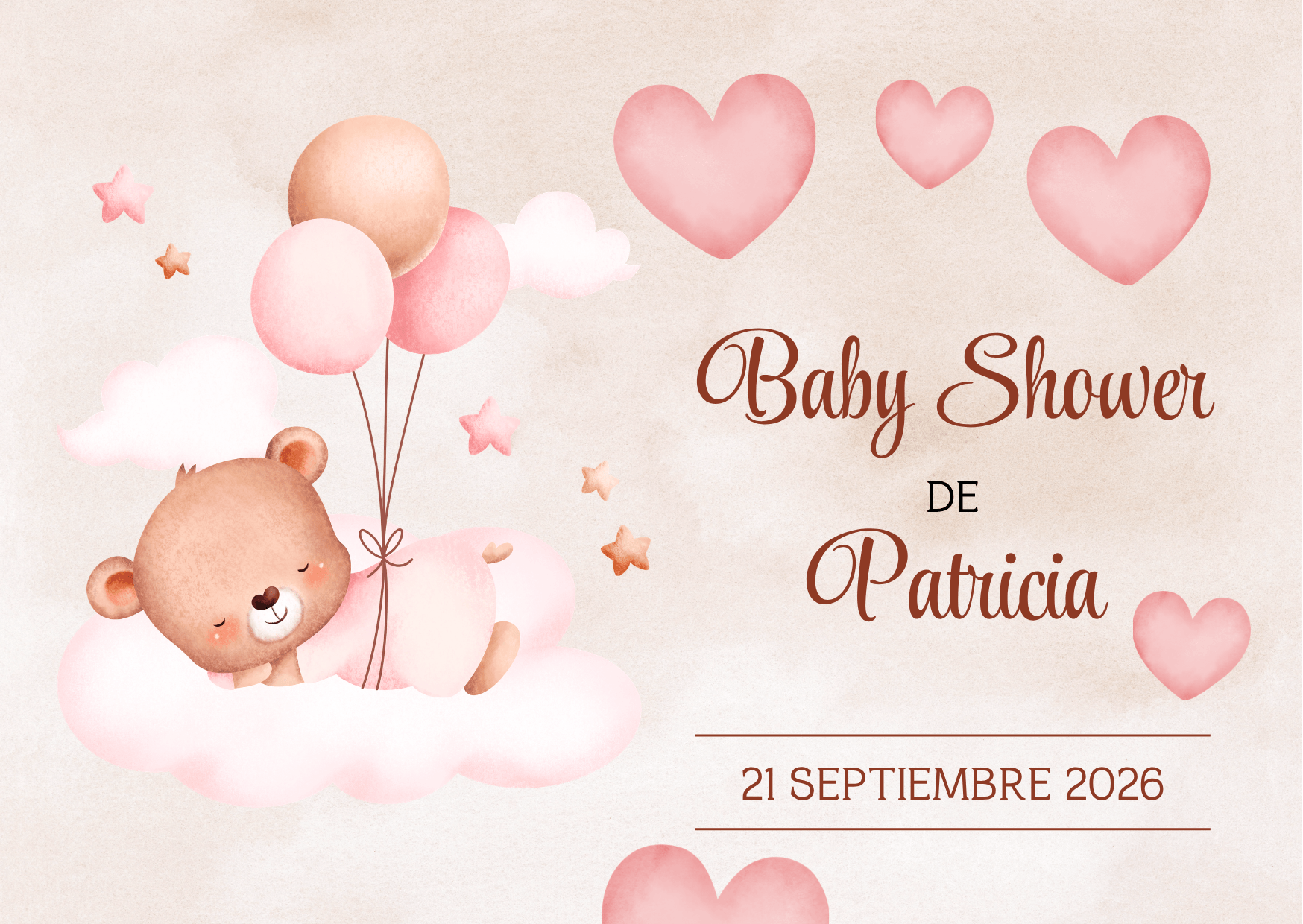 Tarjeta de Invitación Horizontal a Baby Shower 2