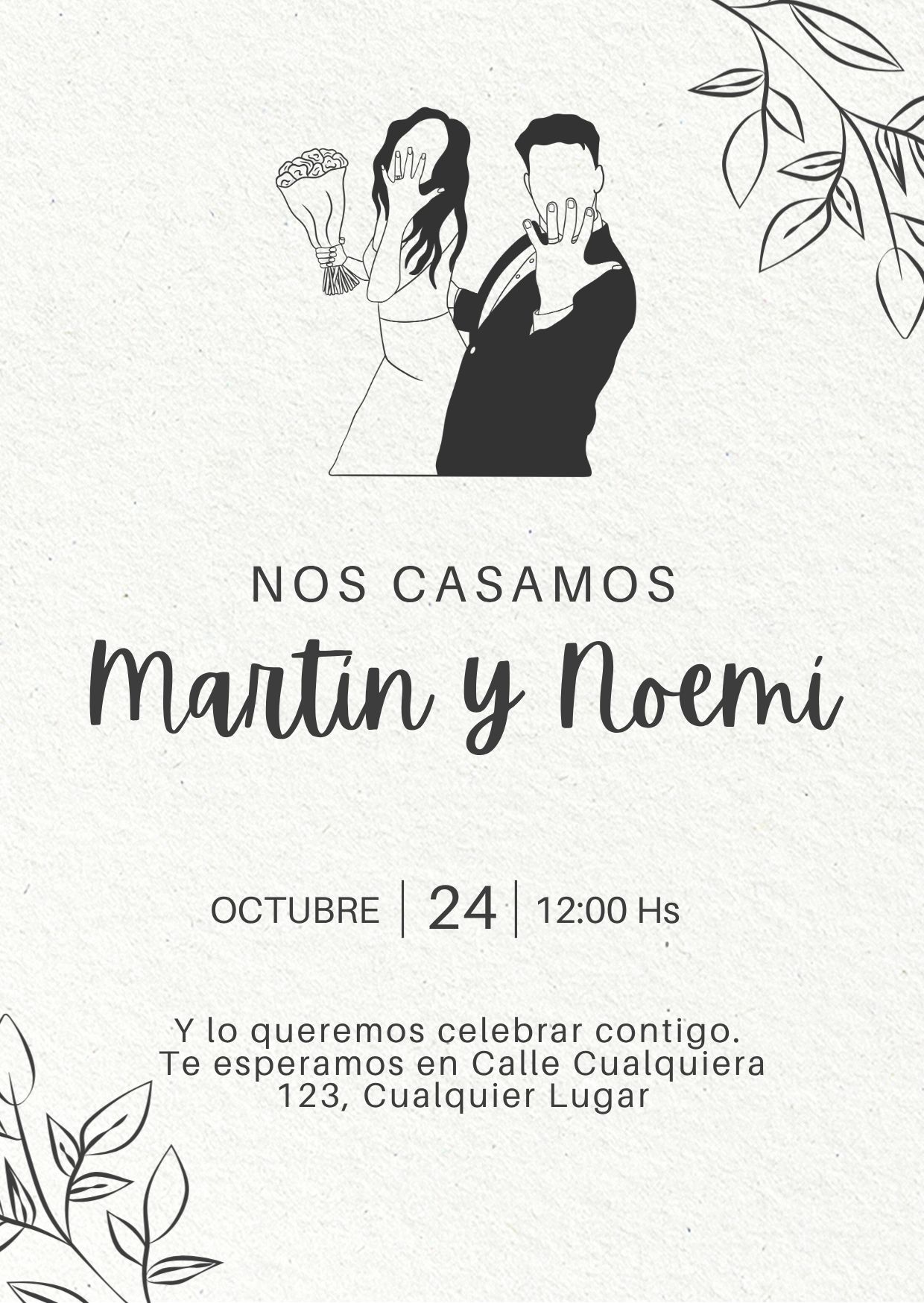Tarjeta de Invitación Vertical a Boda 3